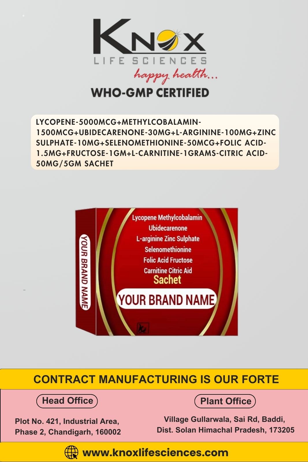 Lycopene, Methylcobalamin, Ubidecarenone, L-Arginine, Zinc, Selenomethionine, Folic Acid, Fructose & L-Carnitine Granules